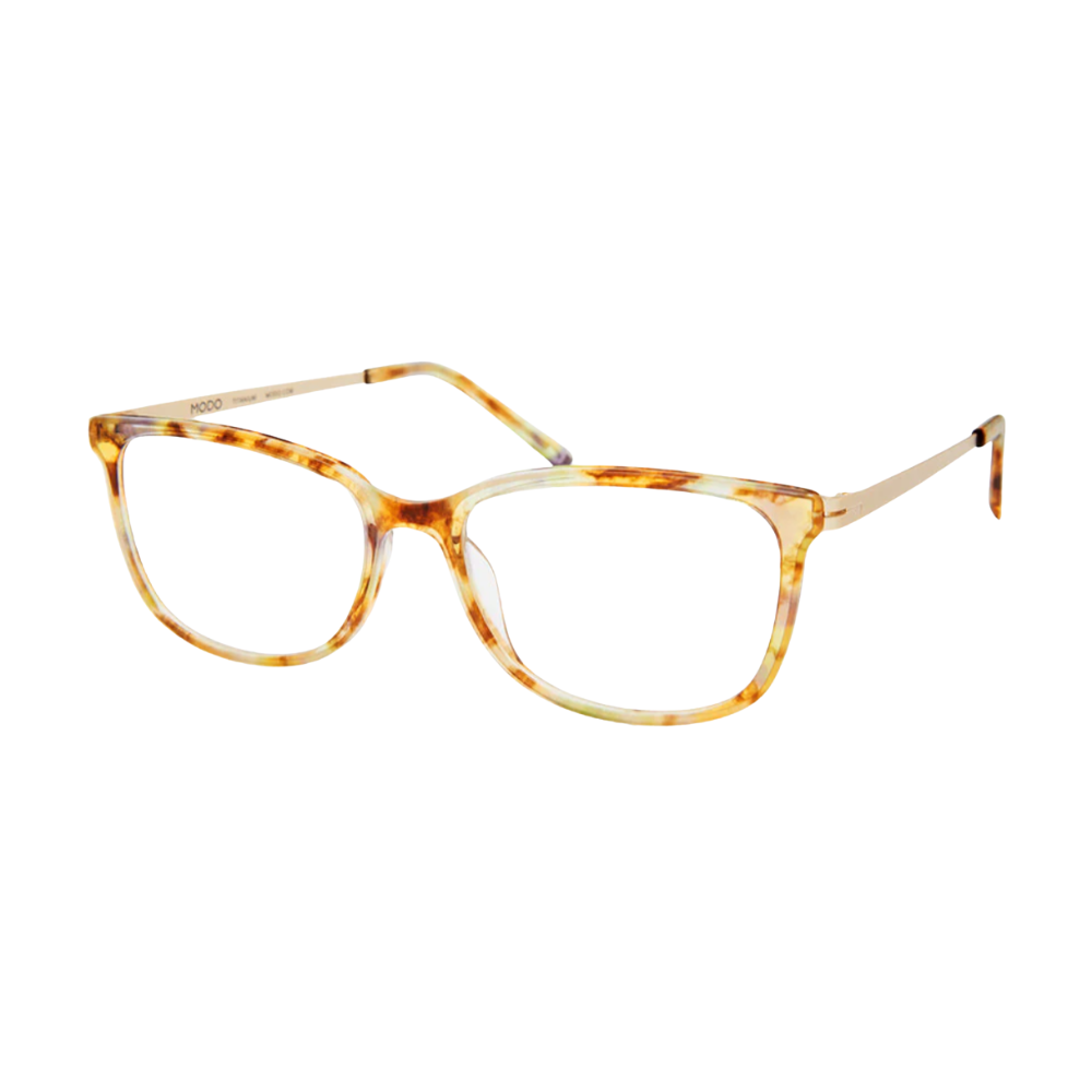 La montura MODO 4557 destaca por combinar un frente de acetato de colores con un esqueleto y patillas de titanio o beta-titanio para ofrecer una solución óptica ligera y cómoda.